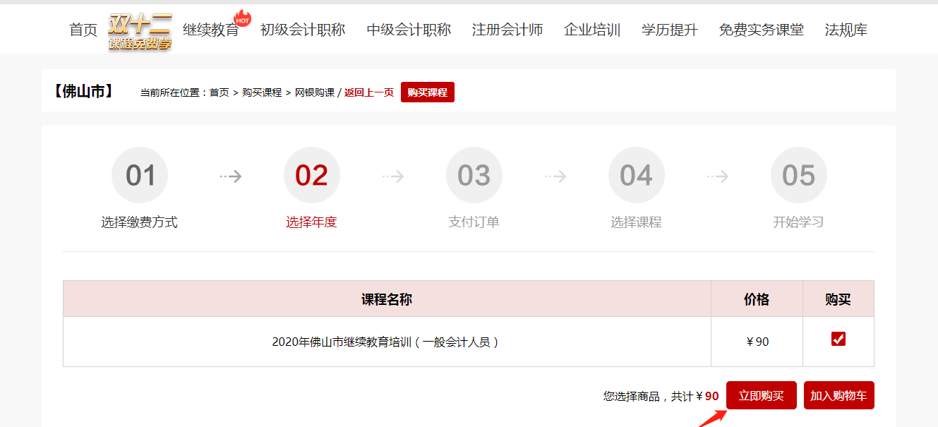9、确认并勾选您所需购买的课程年度和级别,点击立即购买,如图13所示: