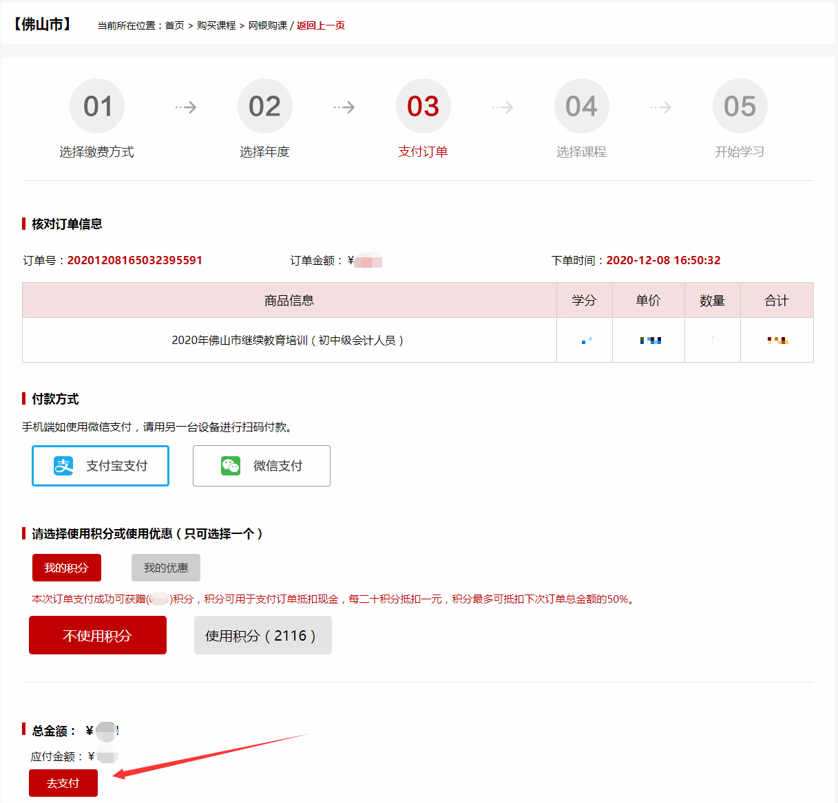 10、核对订单信息,选择支付方式,并点击下方“去支付”,如图14所示: