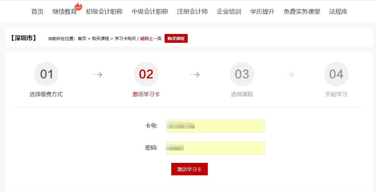 12、学习卡购课方式,学习卡是一张实体卡,一般用于团购,发放激活使用。使用需要激活,点击“学习卡购课”,需要输入学习卡卡号,刮开涂层遮盖的密码,点击“激活学习卡”。如图15、16所示。