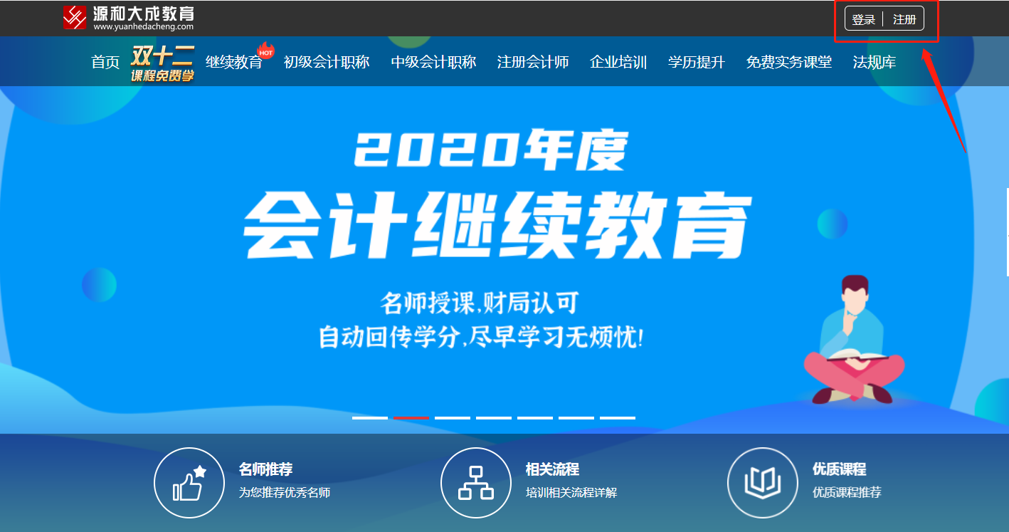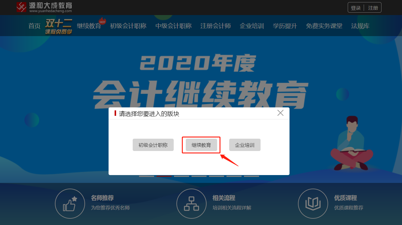 2、注册成功后需要去登录,在页面右上角点击“登录”按钮,选择需要进入的版块进行购买课程,如图3、4所示: