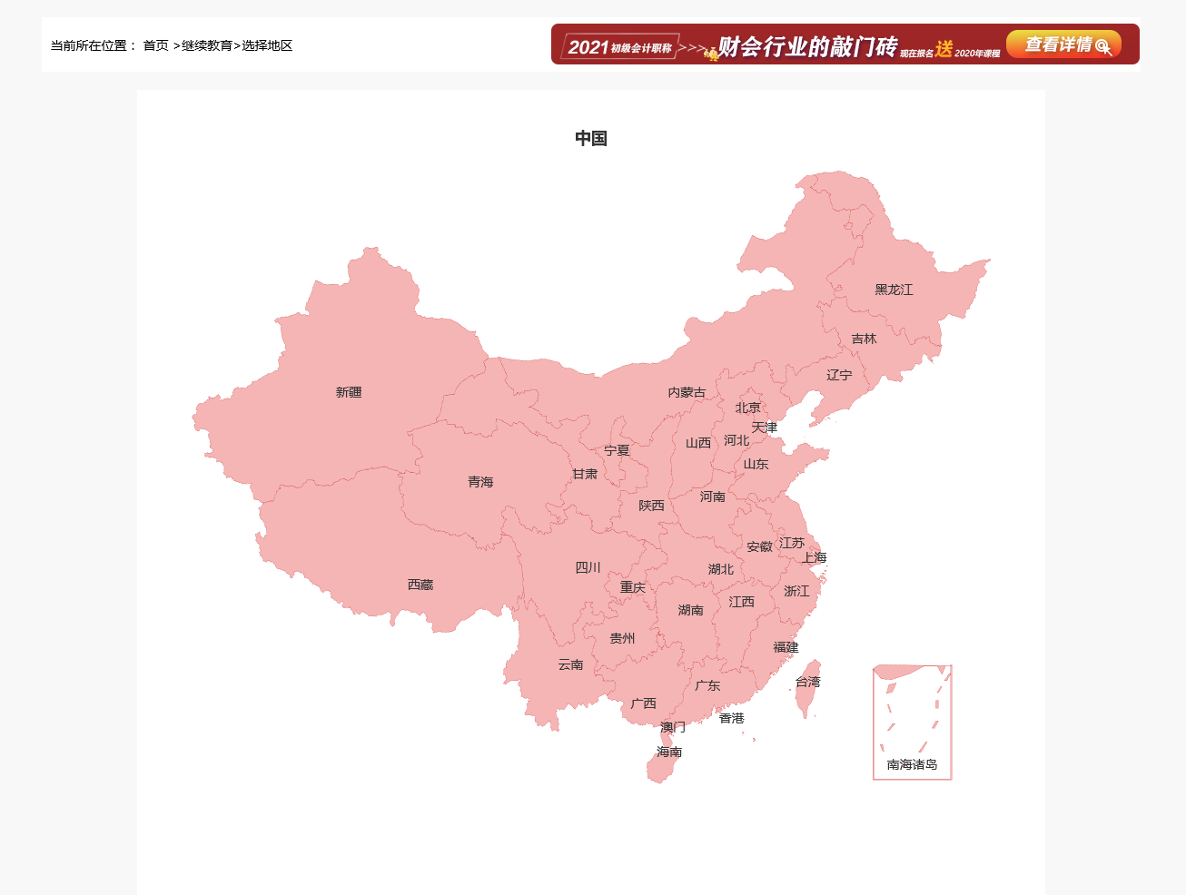 4、登录成功之后,显示中国地图,需要选择学习地区,根据自身工作所在地进行选择,如图6、7所示: