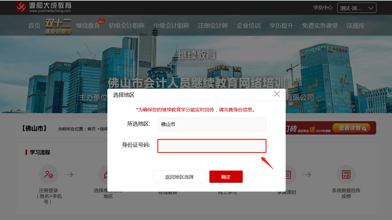 6、点击购买课程后,为了成绩能够实时回传,需要填写身份证信息,然后点击确定按钮,如图9所示: