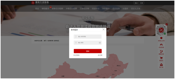 2.在页面弹出登录框部分键入您的手机号码、密码后,点击登录按钮,登陆成功后点击中国地图选择自身工作所在地然后进入“学员中心”,如图2、图3所示: