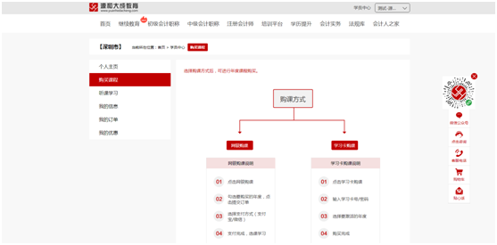 3.进入学员中心,左侧导航点击"购买课程",选择学习卡购课,如图4所示: